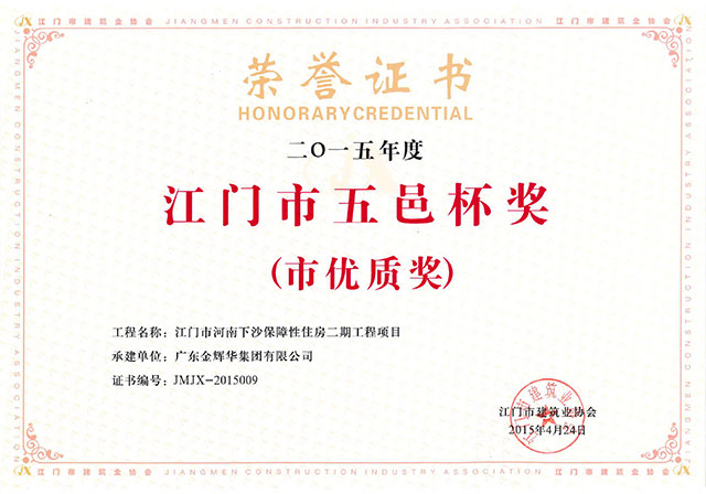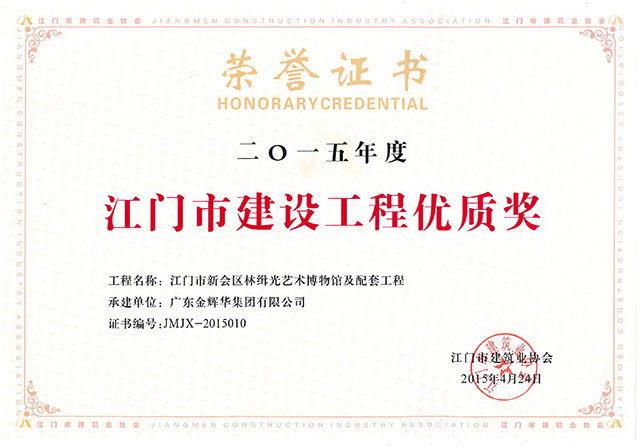 熱烈慶祝我公司榮獲江門市建設(shè)工程優(yōu)質(zhì)獎(jiǎng)
