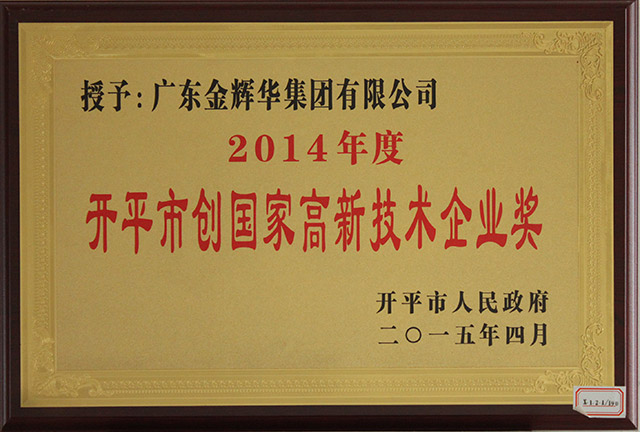 熱烈慶祝我公司榮獲開平市創(chuàng)國(guó)家高新技術(shù)企業(yè)獎(jiǎng)