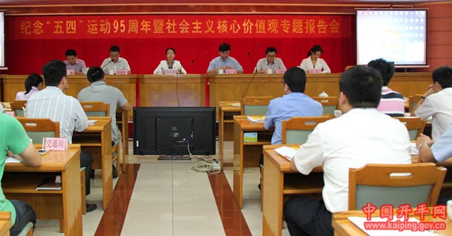 4月30日下午,開平市召開紀念五四運動95周年暨社會主義核心價值觀專題報告會,加強社會主義核心價值觀教育,激發(fā)全市廣大團員青年繼承弘揚“五四”精神。市委常委、市委統(tǒng)戰(zhàn)部部長顏海娜出席會議并為獲獎單位和個人頒獎。 會議現(xiàn)場會議對榮獲“2013...
