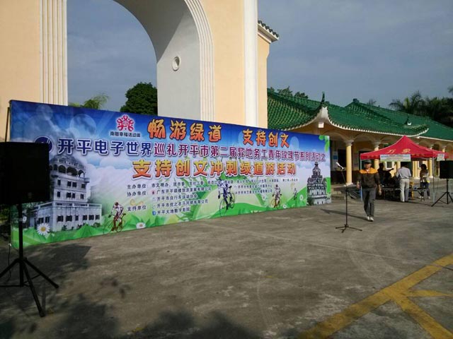 2013年11月17日陽光明媚的早晨,我集團(tuán)公司的三位青年員工聚集在開平立園的門口,等待著參加開平市舉辦的第二屆異地務(wù)工青年玫瑰節(jié)活動(dòng)“暢游綠道,沖刺創(chuàng)文”。 活動(dòng)現(xiàn)場(chǎng)團(tuán)市委書記梁文斌講話該次綠道活動(dòng)從開平立園出發(fā),沿著蜿蜒的市級(jí)“綠道”,途經(jīng)塘口自力村再到塘口榮桂坊景區(qū)。一路上,不僅可以瀏覽碉樓村落風(fēng)光,感受濃厚的碉樓文化底蘊(yùn);還體驗(yàn)低碳環(huán)保生活,感受我市創(chuàng)文帶來的新面貌。此外,活動(dòng)中還包含“尋