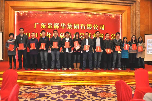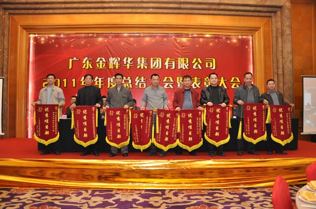 在大會(huì)上,開平市住建局局長(zhǎng)吳進(jìn)進(jìn)作了大會(huì)發(fā)言,充分肯定金輝華公司的成績(jī),勉勵(lì)金輝華公司為重振開平實(shí)現(xiàn)跨越發(fā)展再立新功。總裁李甫作了2011年度工作報(bào)告并提出2012年的展望,董事長(zhǎng)張國(guó)球作了重要講話。最后對(duì)一批為集團(tuán)公司作出突出貢獻(xiàn)的優(yōu)秀員工、優(yōu)秀黨員、團(tuán)員、女職工、優(yōu)秀項(xiàng)目部進(jìn)行了表彰,并對(duì)困難員工進(jìn)行慰問。
