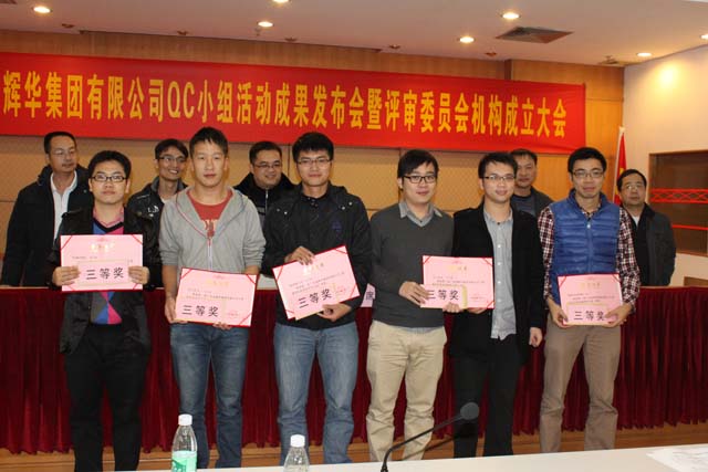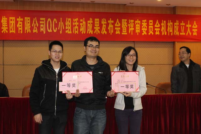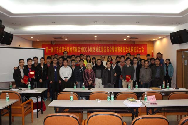 為進一步提升我集團公司工程建設質量管理水平和企業(yè)市場競爭力,激勵我司員工積極參與項目質量管理與創(chuàng)新活動,配合集團公司每年度的申報?。ú浚┘墶壹壻|量管理小組稱號,并建立集團公司工程建設質量管理小組活動的長效機制,進而推動集團公司的工法課題的采集和編制工作。2012年12月18日,第一屆廣東金輝華集團有限公司QC成果活動發(fā)布會暨評審委員會機構成立大會在開平輝華樓會議室舉辦,總工室主任陳力夫、工程管理中心主任張解矛、副主任余志文、技術中心主任詹前進參加了發(fā)布會,本次發(fā)布會特邀廣東天竟建設有限公司總工盛克亞、項目經理張國勝、高級工程師樊代清三位QC質量管理專家擔任評委。