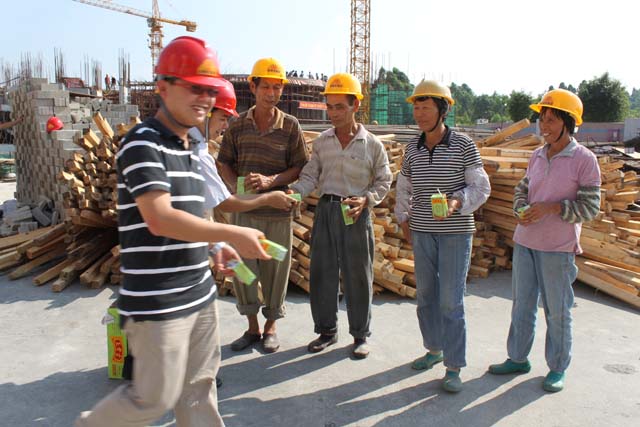 貫徹安監(jiān)總局辦公廳、衛(wèi)生部辦公廳、人力資源和社會(huì)保障部辦公廳、中華全國(guó)總工會(huì)辦公廳關(guān)于進(jìn)一步做好夏季防暑降溫工作的通知精神,保障我公司集團(tuán)員工在高溫天氣情況下安全順利的開展各項(xiàng)施工工作,公司黨委書記張解矛、工會(huì)副主席高迎春、行政中心副主任梁沛瑩、工程管理中心鄭國(guó)燦等同志于7月23日下午來到了金輝華綜合大樓施工現(xiàn)場(chǎng),對(duì)一線施工人員在炎熱高溫環(huán)境下工作的情況進(jìn)行了親切的慰。