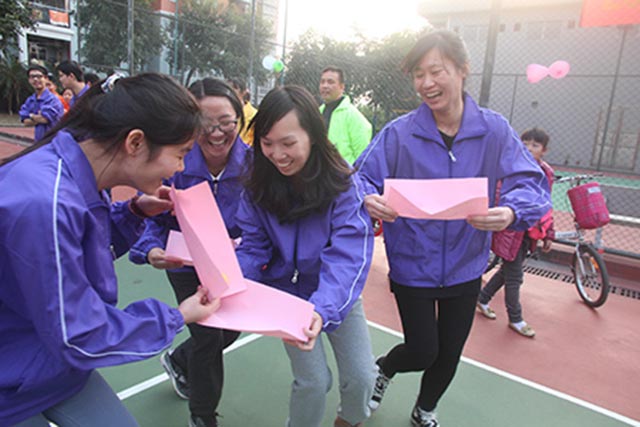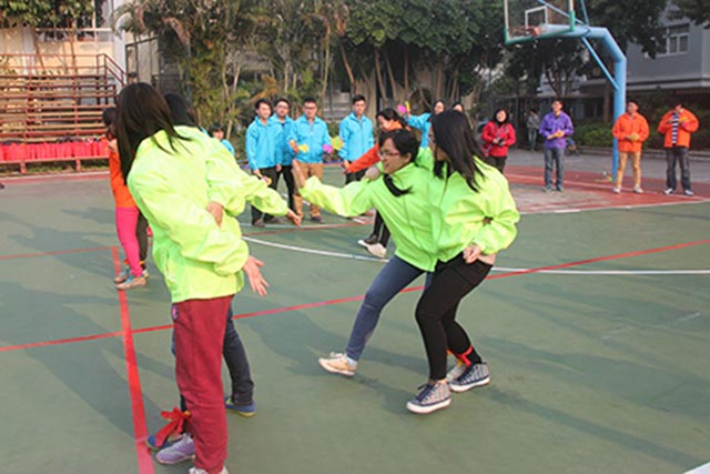 本次趣味運(yùn)動(dòng)會(huì)采取大學(xué)生村官和金輝華集團(tuán)黨團(tuán)員代表混合組隊(duì)的形式,組成4隊(duì)開展比賽。比賽項(xiàng)目有齊心協(xié)力、二人三足接力、搶凳仔、義氣踢毽和全心傳意。