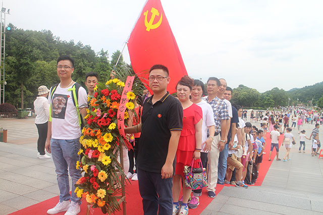活動中,全體黨員同志參觀了偉大領(lǐng)袖毛澤東同志故居,并聽導(dǎo)游講解了毛澤東同志為大眾而舍小家,為革命犧牲了六位親人,為理想不屈不撓,困難和逆境不消沉不動搖,經(jīng)受住各種風險和困難考驗;使大家感動至極。到了毛澤東銅像廣場,向毛澤東同志銅像敬獻了精心準備的花籃,全體黨員列隊向毛澤東銅像三鞠躬,并圍繞銅像緩步而行,仰望偉人雄姿,感受一代偉人的驕人風采和無往不前的巨大力量。
