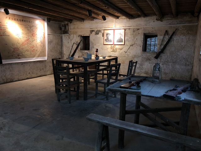 簡陋的桌椅、古老的汽燈、古樸的八角碗,這些就是當(dāng)年司令部的擺設(shè)。在以前這么艱苦的條件下,我們的指戰(zhàn)員就在這里研究敵情、制定作戰(zhàn)計(jì)劃,擊退了敵人的無數(shù)次進(jìn)攻。