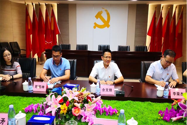 2020年6月30日下午,在開平市委常委、組織部部長余文鋒同志的帶領下,市委組織部副部長李榮杰、市委組織部人才股股長孫得標,以及長沙黨工委副書記陳振坤、組織辦曾秋怡等同志,來我司實地調研黨建情況。我司董事局主席周珉興、黨委書記兼法定代表人唐國忠、黨委副書記張解矛、黨委委員李慧娟、紀委委員梁國宏、集團副總裁兼開平區(qū)域總經理魯大鵬等同志熱情接待了調研人員。