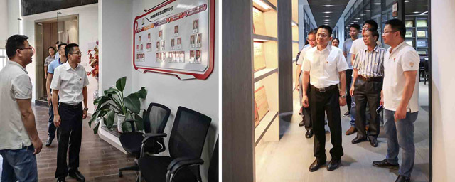 余文鋒常委等同志在我司黨委書記唐國忠的引領下,參觀了我司黨群服務中心。唐國忠書記詳細介紹了我司黨工青婦人員架構以及活動剪影墻、黨建文化墻、紅色書屋、公司獎牌與獎杯榮譽展示墻,并觀看我司黨建視頻宣傳片。雙方就“兩新組織”企業(yè)黨建工作的難點和要求,黨組織的發(fā)展和擴大,人員培養(yǎng)、人員招聘以及黨員發(fā)揮的先鋒模范作用等企業(yè)黨建工作展開深入熱烈的交流。